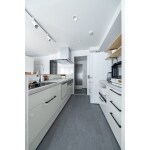 カウンターとシンクは一体成形の人造大理石のシステムキッチン
