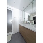 間口ぴったりの新しい洗面は、収納量が上昇。使い心地も上昇!