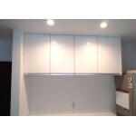 キッチン照明:新築時に設置されていたキッチンカウンター上のダウンライトとのバランスを考慮して、明かりの色・広がりを統一するように、同じ照明機器をバランスよく設置することをご提案をいたしました。 キッチン吊戸棚:お客様ご自身で事前に各ショールームに行かれ調査研究されていて、数ブランドの商品を選定した上でのお見積り依頼でした。 その中から予算と希望にあったメーカー商品を選択されました。 弊社としても、お客様のご要望に合ったお勧めの商品でしたので、吊戸棚につきましては特に大きな提案はありません。