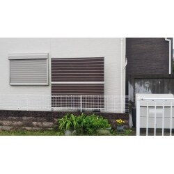 既存のフェンスをそのまま活かして、ブロックの上から窓が隠れる高さの間隠しフェンスでご提案。エアコンの室外機の交換される場合でも、独立基礎が邪魔をしないように設置位置を調整します