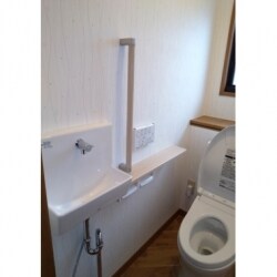 トイレ:雰囲気を変えたいとのことで、タンクレスも検討しましたが、費用面も含めメリット・デメリットをご案内いたしました。 手洗い器:壁に新設するにあたり、給排水の新設と壁中の下地の補強が必要になることをご案内いたしました。 床:周囲とのバランスを考えて、同じ色合いの雰囲気の違うタイプのクッションフロアを採用いたしました。 手すりの設置も合わせてご提案いたしました。