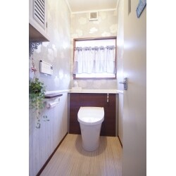 かわいいナチュラルな雰囲気にして、家具も生かしたい。節水型の最新の便器に変更したい。