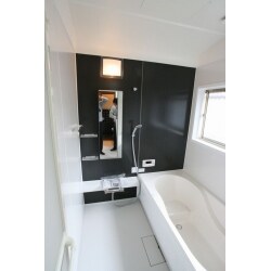 在来浴室からユニットバスへ。 浴槽は段差のあるタイプにしてお子様とゆったりお風呂時間を楽しんでいただけます。広々とした浴槽なので足を伸ばして入っていただけます。