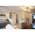 寝室との間仕切り壁を取り、リビングを広げることで、全方位明るく光が届きます。キッチンとベッドスペースの間には室内窓で隔てることで、光は入れながらも、匂い対策もできます。窓にはウッドブラインドを入れ、リゾート感を出し、照明、棚などにもこだわりを。全体的に白でまとめ、植物や絵を飾っても映えるお部屋に。建具の周り、天井のケーシングなどは弊社の輸入住宅部門で使われている化粧のモールで飾り、より海外風に。