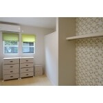 物置になっていた和室をリフォームしました。使いやすいようにハンガーパイプを両サイドに設置。洋服部屋として使いやすく生まれ変わりました。かわいいクロスとロールスクリーンで遊び心も必須です。