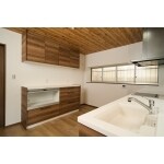 落ち着きのあるアクセントパネルが映えるシステムバス