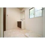洗濯機の配置を移設し作業動線を改善した洗面室