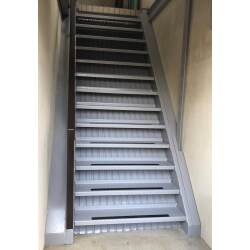 ・劣化したカーペットを剥がし、錆ができた階段を塗装しました。 ・滑り止めとしての役割を担っていたカーペットの代わりに、黒の滑り止めテープを取り付けました。