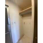 洗濯機の上にタオルなど干せるパイプと収納棚が欲しい。