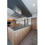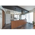 間取りを変更し、キッチンのサイズアップとともに奥様の夢だったアイランドキッチンを実現しました。 天井は段差を設け、床は材質を貼り分けたことで、高級感のあるキッチン空間になりました。