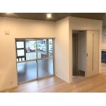 玄関ホールスペースに扉を設けて、和室、ダイニングキッチンを仕切っていた壁を取り払いワンフロアにしました。