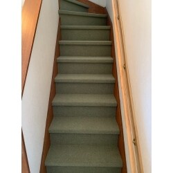 古くカーペットが劣化した階段をきれいに 暖かみのある素材にて張り替えたい