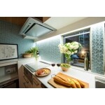 朝のキッチン ブルーのタイルが爽やかな朝を迎えます。