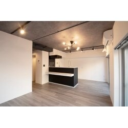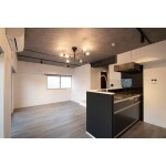 物件購入に伴って2LDKだった間取りをLDKとウォークインクローゼットにリノベーションされたお施主様。居室の代わりにウォークインクローゼットを設け、収納力が高まりました。 40平米未満の室内と感じさせないような工夫が随所に施されていて、部屋の高さを確保し、隠蔽配線でスマートなラインに。また、サニタリーとお手洗い以外建具を設けなかったことで、空間を最大限に使い、圧迫感のない開放的な住まいを実現させました。黒やグレーを基調にしつつも、白を多く取り入れたことで調和のとれたシックな住まいの完成です。