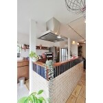 ・構造上必要な壁や柱を残しつつ、できるだけ使いやすく広々と使用できるようプラン致しました。 ソファ後ろの本棚も構造上必要な壁を残し、その部分を可動棚としました。 ・柱の位置を1本移動させて、対面キッチンと致しました。背面に収納を充実させ、収納兼飾り棚を設けました。 キッチンから全体が見渡せる開放感のあるキッチンとなりました。 ・クローゼットは壁一面の天井までの収納とし、使いやすい引き戸としました。 服やカバン等、用途によって収納できるよう、ハンガーパイプや可動棚などを組み合わせた内容となっています。