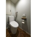 廊下側の収納をトイレに取り込み、空間を広げる提案をさせていただきました。 広くなったトイレは控えめな柄クロスとお洒落なヘリンボーン床を合わせてナチュラルで温かみのある内装に仕上げました。 こだわりのアイアン小物がアクセントとなり、ラスティックな雰囲気に。 選定したリクシルのトイレ「アメージュ」は独自の新素材・アクアセラミックを使った便器やフチレス形状でお掃除も楽に行えます。 デザイン性の高いなめらかなフォルムがお洒落な内装にマッチし、清潔感のあるトイレ空間に生まれ変わりました。