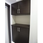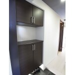 お客様のご要望で白のキッチンに合わせてご提案させて頂きました。冷蔵庫を置くスペースがあるので見た目もとてもスッキリにまたスペースを広くとることができます。