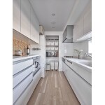 ライフステージの変化により、キッチンを対面型から、収納重視の壁付型に変更し、窓からルーフバルコニーを眺められるようにしました。