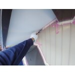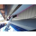 屋根に上がって原因を調査しました。 軒天や母屋との取り合いの隙間が原因でしたので そこをシーリング補修させていただきます。