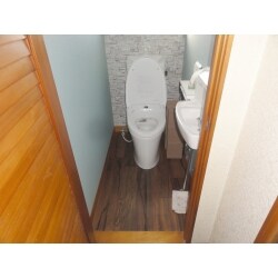 トイレ、壁、床を一新し、新たに手洗い器も取り付けました。