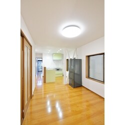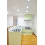 ・使用していない和室とリビングを繋げてLDKを一体として使用出来るようにしました。 以前、キッチンが設置されていた場所には、寝室を設置して1フロアで生活出来るようにしました。 ・狭小間口の敷地の為、キッチンをL型にする事で、対面キッチンとしました。 作業スペースも確保され、コンパクトに納まりました。色は、奥様のお気に入りのライム色に。明るく爽やかなキッチンスペースとなりました。 ・洗面化粧台を新しくしました。 その際、設置する向きを変更し作業スペースを広く確保しました。壁クロスはリーフ模様のかわいらしい柄を選びました。 ・和便器から洋便器に変更しました。 段差が無くなり移動がしやすくなりました。タイルからクッションフロアに貼り替える事で掃除もし易くなりました。壁クロスは洗面脱衣室と同じ、レリーフ模様のかわいらしい柄を選びました。