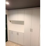 ドアの色と壁紙を白色に統一して、広がりと奥行きのある空間に