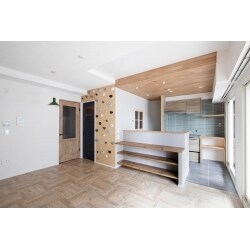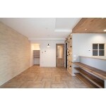 お子様の進学に伴い、一人のお部屋を作りたいという想いからリノベーションのご相談をいただきました。ペットの愛犬と暮らされる中で、お子様との居住空間を分けたいと思ったこともリノベーションのきっかけのひとつ。 せっかくリノベーションをするなら、費用を抑えながらもこだわりたい!とのご要望で、リビング1面のエコカラットはすべて既存で残すことを選択。リビングスペースはパーケットタイプのフロアタイル、キッチンとトイレはグレーのフロアタイルに目地棒を使い、本物のタイルのように演出しました。