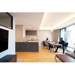 ご夫婦でお住まいのお施主様。物件のご購入を機に、お客様らしいワンランク上の生活空間へとご変身させるため、リノベーションをされました。 大きな間取り変更はなく20年前によく構成されたリビングから繋がる和室は、室内窓を設け1部屋が完成しました。 ラグジュアリーなホテルライクを基調に、各居室にフレンチな世界観をもたらします。 扉を開けると広々とした明るい玄関がお出迎え。 一つ一つの素材が綺麗に見えるように照明にもこだわっており、ヴィンテージ感のある照明が印象的です。ウォークインクローゼットのカラフルな壁紙からは、まるで外国に来ているかのような夢心地を味わうことができます。