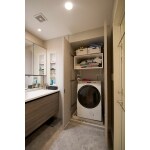 狭い空間の中に設計された便利な機能とキレイに整えられた浴室