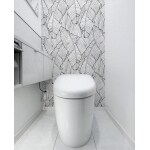 構造上、間取り変更は叶いませんでしたが、日頃のお手入れが楽になるのはもちろん、器具と内装にこだわったご提案をさせていただきました。 最終的に選定いただいた大柄クロスがアクセントとなり、スタイリッシュでおしゃれなトイレ空間に生まれ変わりました。
