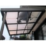 【施工前】 1階ベランダの波板が劣化し、一部雨が漏れるようなすき間があいていました。