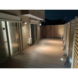 - 空きスペースをお洒落なウッドデッキと間接照明で寛ぎの空間に。