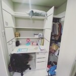 部屋の間取りを変更してウォークインクローゼットを新設しました。 押し入れをクローゼットに替え、その中にLIXIL「ヴィータス」にて勉強机を造作。