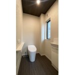 1階トイレ ・LIXILタンクレストイレ:サティスSを設置しました。タンクレスの為、空間を広く使うことができ、お掃除が簡単に。 ・トイレ手洗いはLIXILのコフレルワイド。排水口からバックガード、ウエットスペースまで一体化したつぎ目のない手洗器。汚れがたまりにくく、お手入れも簡単です。