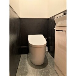 このたびは素敵なトイレ空間に仕上げていただき、ありがとうございました。 ハイドロセラウォールのモザイク柄も、改めて近くでよく見て、丁寧な施工を実感しました。 何から何まで希望通りの仕上がりで大満足です。 施工中も(家具の養生から後片付け、車両の駐車まで)いろいろとご配慮いただき、ありがとうございました。 また次のリフォーム機会がありましたら、よろしくお願い致します。