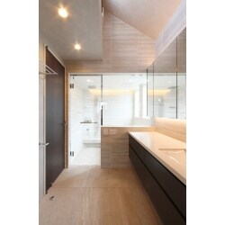 制約が多い一般的なメーカーのユニットバスでは、お客様の理想のバスルームの実現が難しかったので、すべてオーダーで作れるメーカーをご提案しました。 バスタブはもちろん、タイルやドア、水栓などすべてお客様のこだわりのもので製作しました。