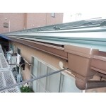 屋根板金部分が雨漏り原因と特定のため、軽量金属屋根材での重ね葺きと破損した雨樋交換に併せて破風板塗装もご提案致しました。