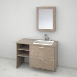 浴室と色合い合わせた化粧台へ
