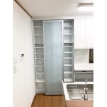 L社のアレスタを設置いたしました。 以前は炊飯器やポットなど大きな家電を置くことで、カウンターのスペースが少なくなっていました。 今回の収納キャビネットは2300mmの大きなスライドドア収納キャビネットで食器や小物が沢山収納できます。家電収納キャビネットもついているのでカウンターに置かずにスッキリと収納できます!