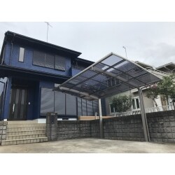 申請範囲内でのカーポート新設です 耐風パッケージをご提案させて頂きました 非常時にはサポート支柱を取り付けられるので、安心です