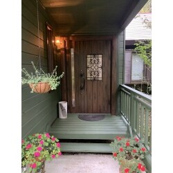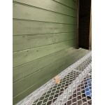 玄関ドアが無垢材を使ったドアになっており、 非常に重厚感はあったのですが、無垢材ということもあり、 湿気の多い時期にはドアが閉まりにくく、開けにくいという状況でした。 これもドアノブだけ交換も検討しましたが、 輸入部品となり納期や費用もかなりかかるということで、 玄関ドアも交換することをご提案させて頂き採用頂きました。 外壁塗装は、ガードラックアクアを使い、 木部に塗料をしっかり染み込ませて腐食を防ぐことの出来る塗料を選定。