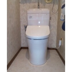 壁リモコンタイプのタンク一体型トイレに交換したい。 同時に床のクッションフロアも張替えたい。 できるだけ予算を押えたい。
