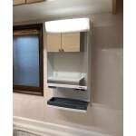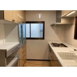収納の多い扉がスライドタイプのキッチンにてご提案させて頂きました。また、カップボードも新しくしてさらに収納量が増えてかなりスッキリとした空間へとなりました。これまで洗面所がなく台所でお顔を洗っていらっしゃったため、新しいキッチンには洗面スペース用収納扉を設置いたしました。レンジフードはお掃除のしやすいシロッコファンタイプのレンジフードにて施工させて頂きました。今回のリフォームでクロスやキッチンパネル、照明もLEDに一新したため以前より明るい空間へとなりました。