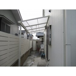 数回の塗装は施してはありますが、奥の方が台風で崩壊しました。元々のテラス屋根はR形状でした。