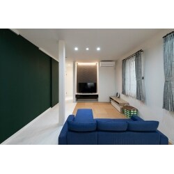 LDKはお子様の様子を⾒ながら、安⼼して料理が出来るように以前よりも開放的にしました。リビングの壁はお⼦さまが絵を描いたり、勉強したり出来るようにマグネット塗料と⿊板塗料を塗り、テレビやキッチンの背⾯にタイルを張っておしゃれに仕上げました。
