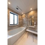 ゆっくり一日の疲れを癒すために、広さと機能、生活動線にこだわったお風呂。 「広いお風呂でゆっくり疲れを癒したい」というご希望から、スペースを拡大しました。 合わせて入浴から就寝までの流れをスムーズにするため、寝室と同じ階にお風呂を移動しました。 洗面室とウォークインクローゼットを隣接することで、お風呂に入る前に他の部屋に衣服やタオルを取りに行く必要もなく、お風呂上がりのスキンケアなどもそのままの流れで出来、寝るまでの流れがスムーズに。 ヒヤッとせずやわらかく清潔や床をはじめ、保温性の優れた浴槽、節水を叶えつつ適度な浴び心地も両立したシャワーなど、清潔性と快適性にも優れています。 浴室乾燥も設置しているので、洗濯物が乾きにくい日にはお洗濯ものを干したりと家事楽にも。