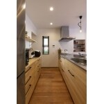 玄関にシューズクロークを、キッチン裏にパントリーを確保し散らかりがちな箇所の収納を充実。 広いLDKは無垢扉や無垢フローリング、無垢面材のキッチン(ウッドワン)と本物の⽊をふんだんに使い温かみのあるLDKに。 洗⾯所やお⾵呂も⼤きめに取り全てゆったりと余裕のある空間に仕上げました。
