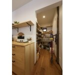 パントリーを確保し収納も充実。 無垢面材のキッチン(ウッドワン)と本物の⽊をふんだんに使い温かみのあるLDKに。