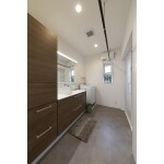 ワイドな洗面化粧台で朝の忙しい時間もゆとりをもって使える洗面。収納も充実し、家族の肌着やリネン類もすっきり片付きます。 ワイドな室内干しや防水性・清掃性に優れた床材、洗面室暖房で、清潔で家事がはかどる洗面に。 光と風の通り道ができ、生活動線もスムーズになり、快適な水まわりを実現。