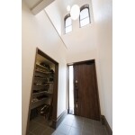 作り付けの玄関収納をとのお話でしたが、吹き抜けで圧迫感のない玄関は多少狭くしても気にならないと思い、思い切って大きな収納庫をご提案しました。